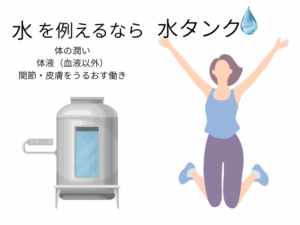• 水=蒸気の元になる水(潤い)